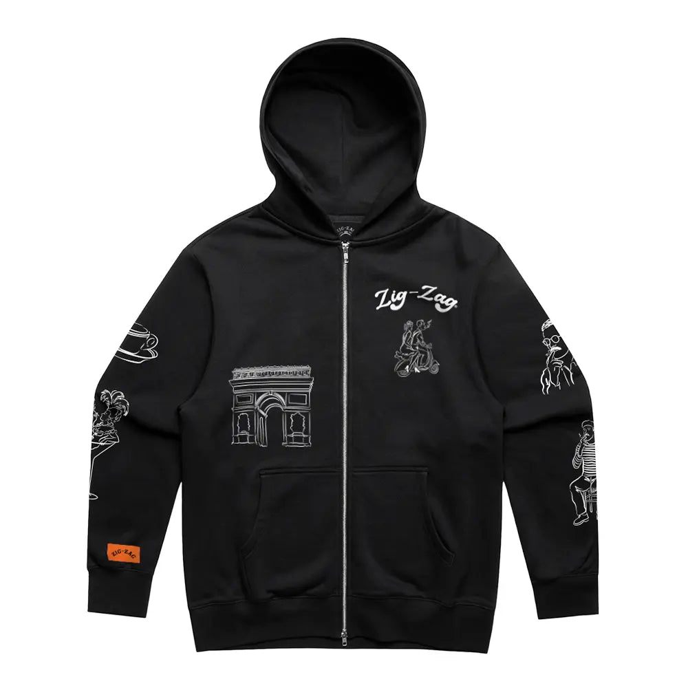 Merci Zip-Up Hoodie - Black